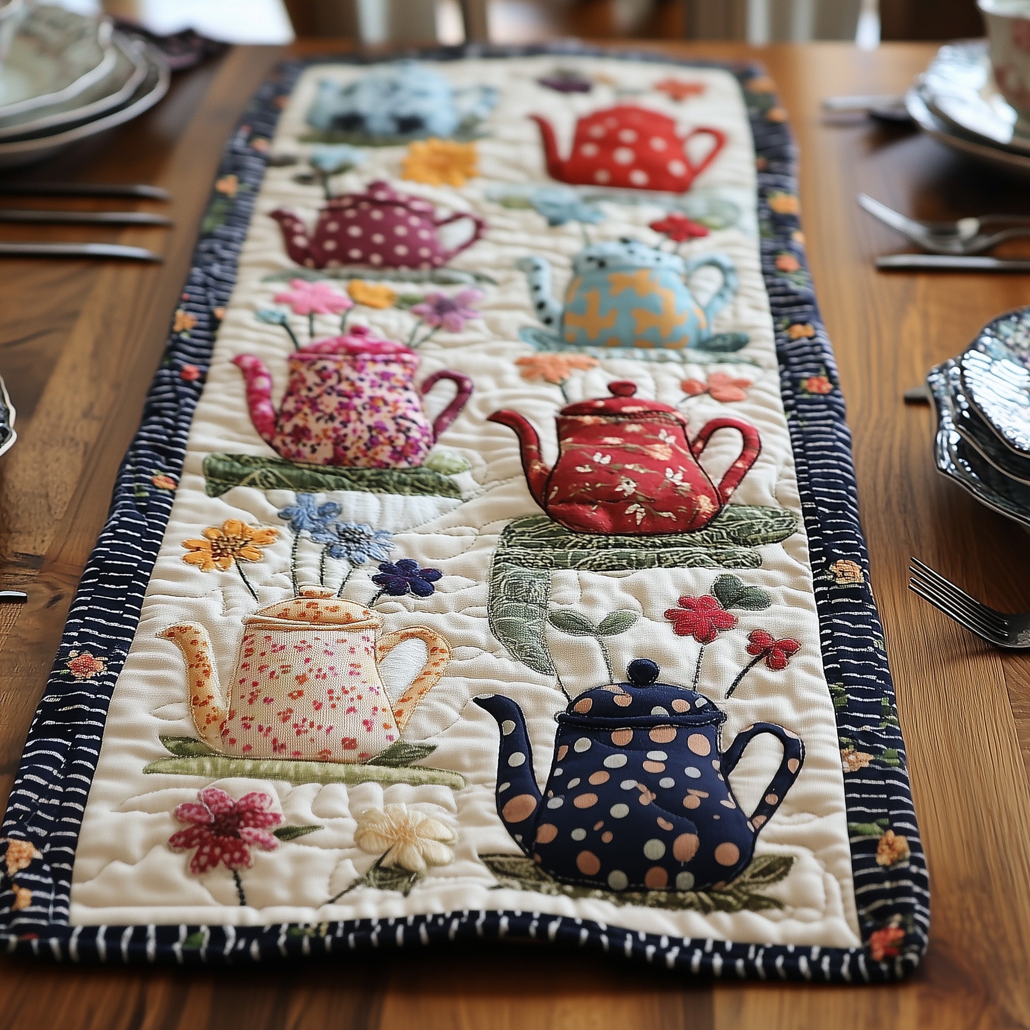 Bloomy Teapot Quilted Table Runner GFTONL4207