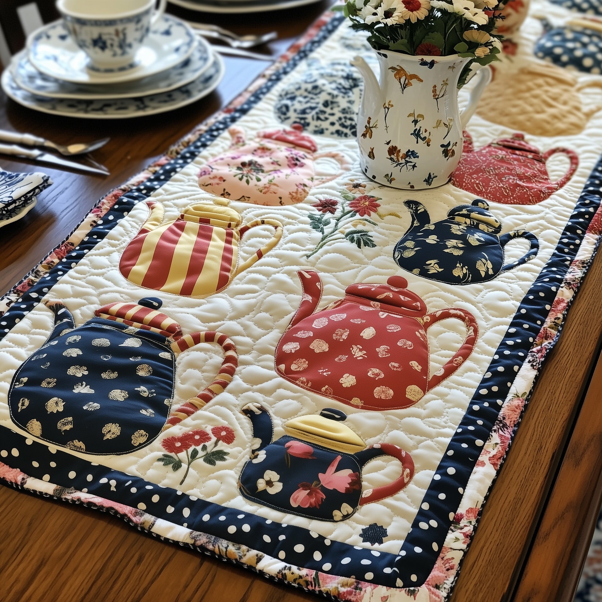 Bloomy Teapot Quilted Table Runner GFTONL4209
