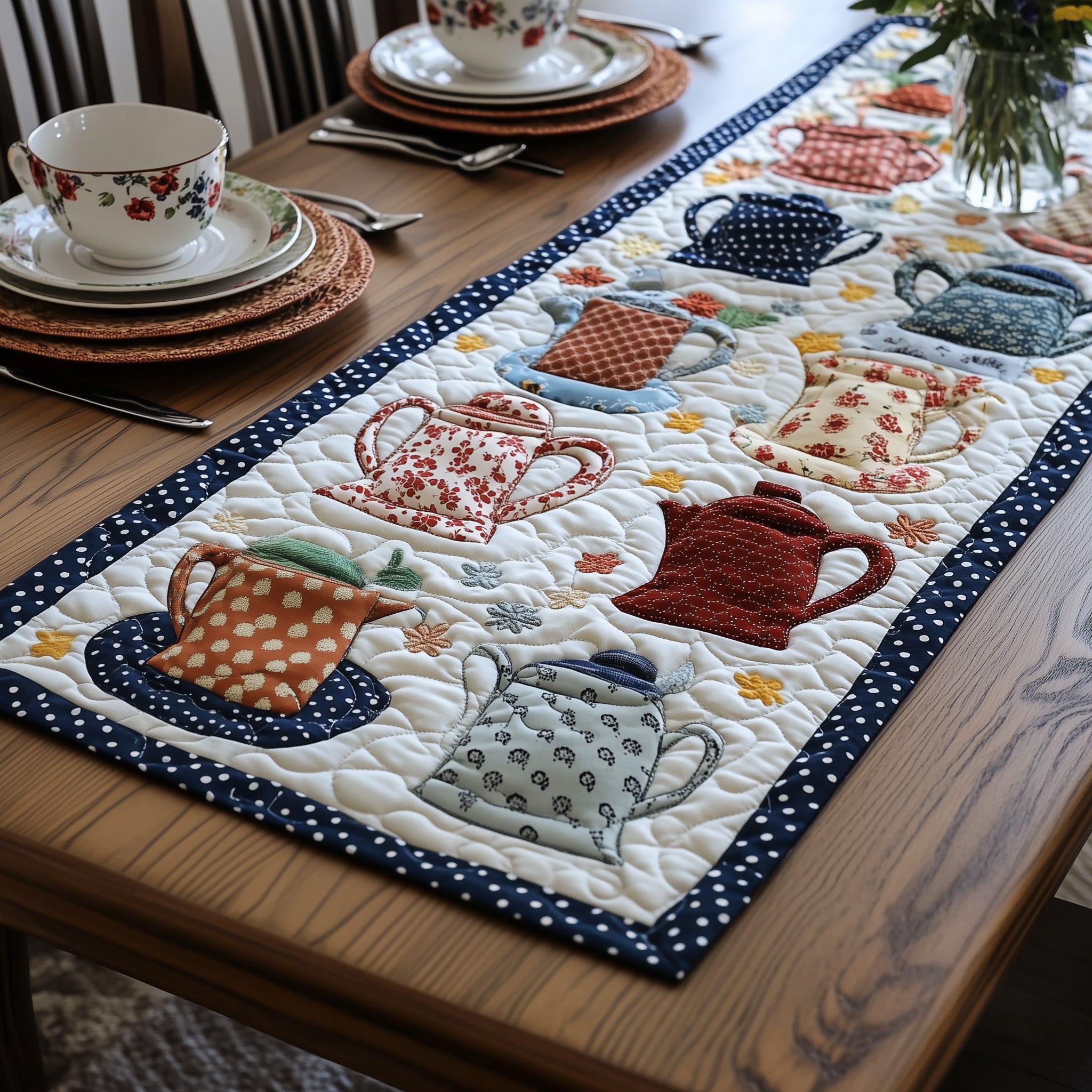 Bloomy Teapot Quilted Table Runner GFTONL4211