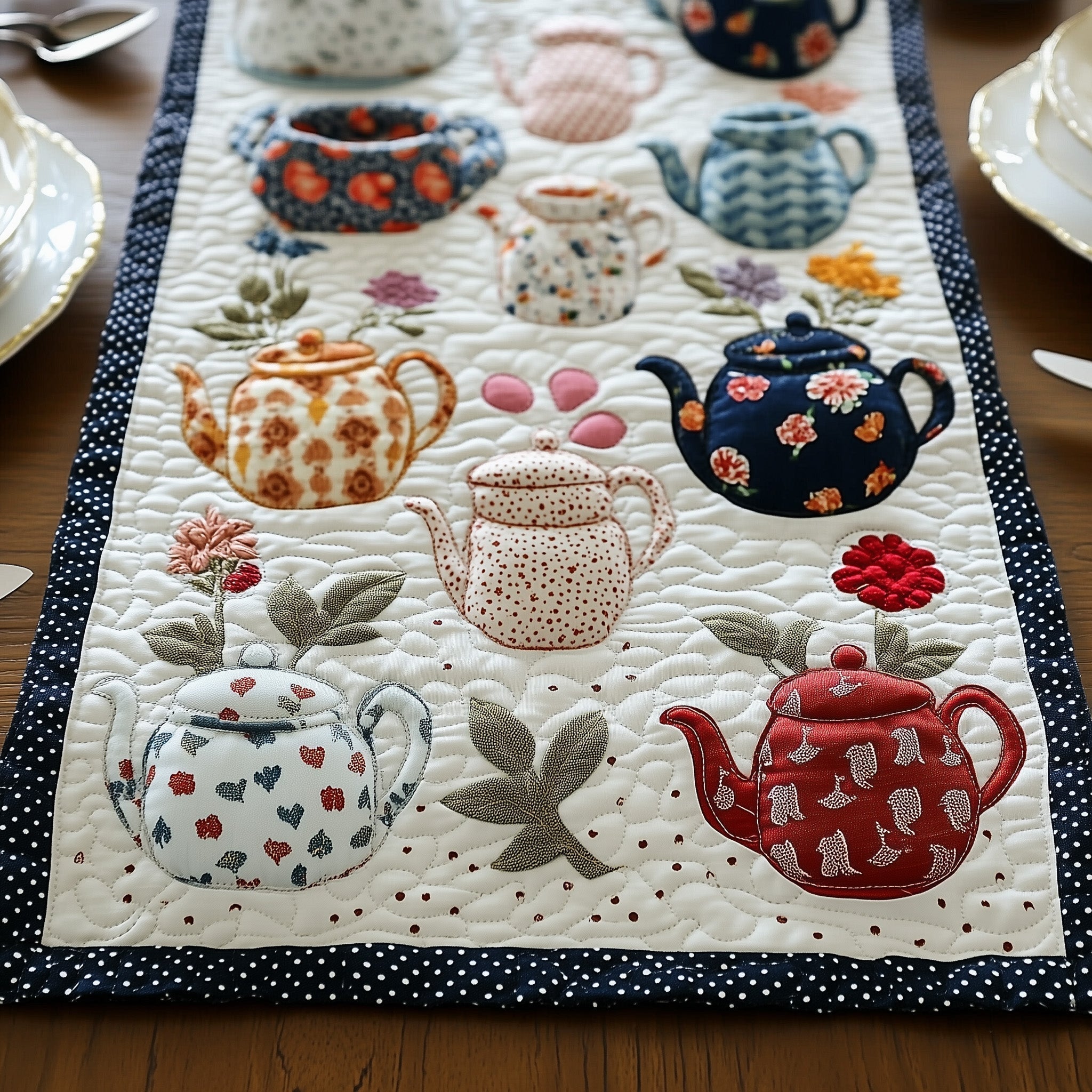 Bloomy Teapot Quilted Table Runner GFTONL4212
