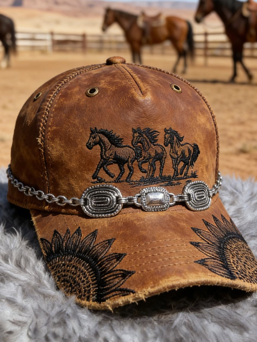 Vintage Western Cowboy Baseball Cap (necklace not included)
