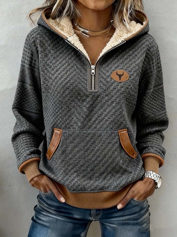 Women'S Casual Color Block Printed Hooded Sweatshirt
