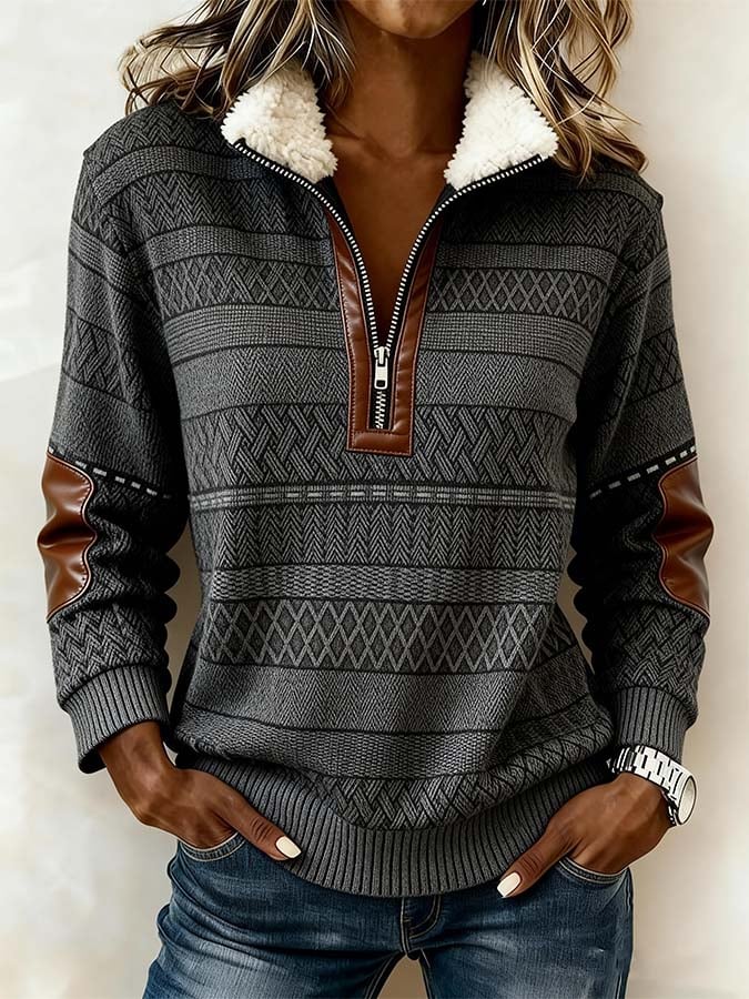 Women'S Casual Color Block Printed Pullover Sweatshirt