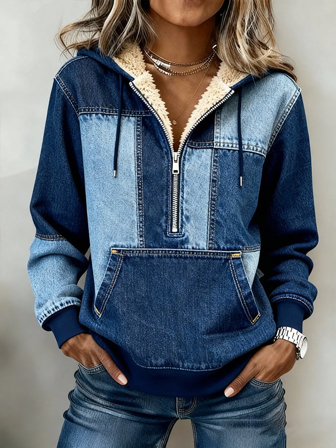 Women'S Casual Loose Color-Blocked Sweatshirt