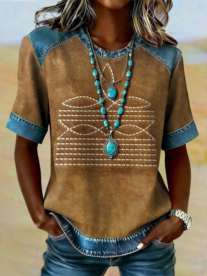 Women's casual retro Western geometric T-shirt