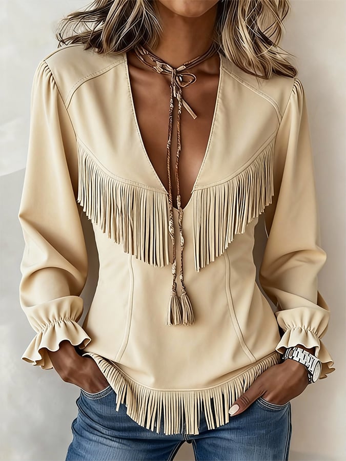 Women's Casual Solid Color Tassel Top