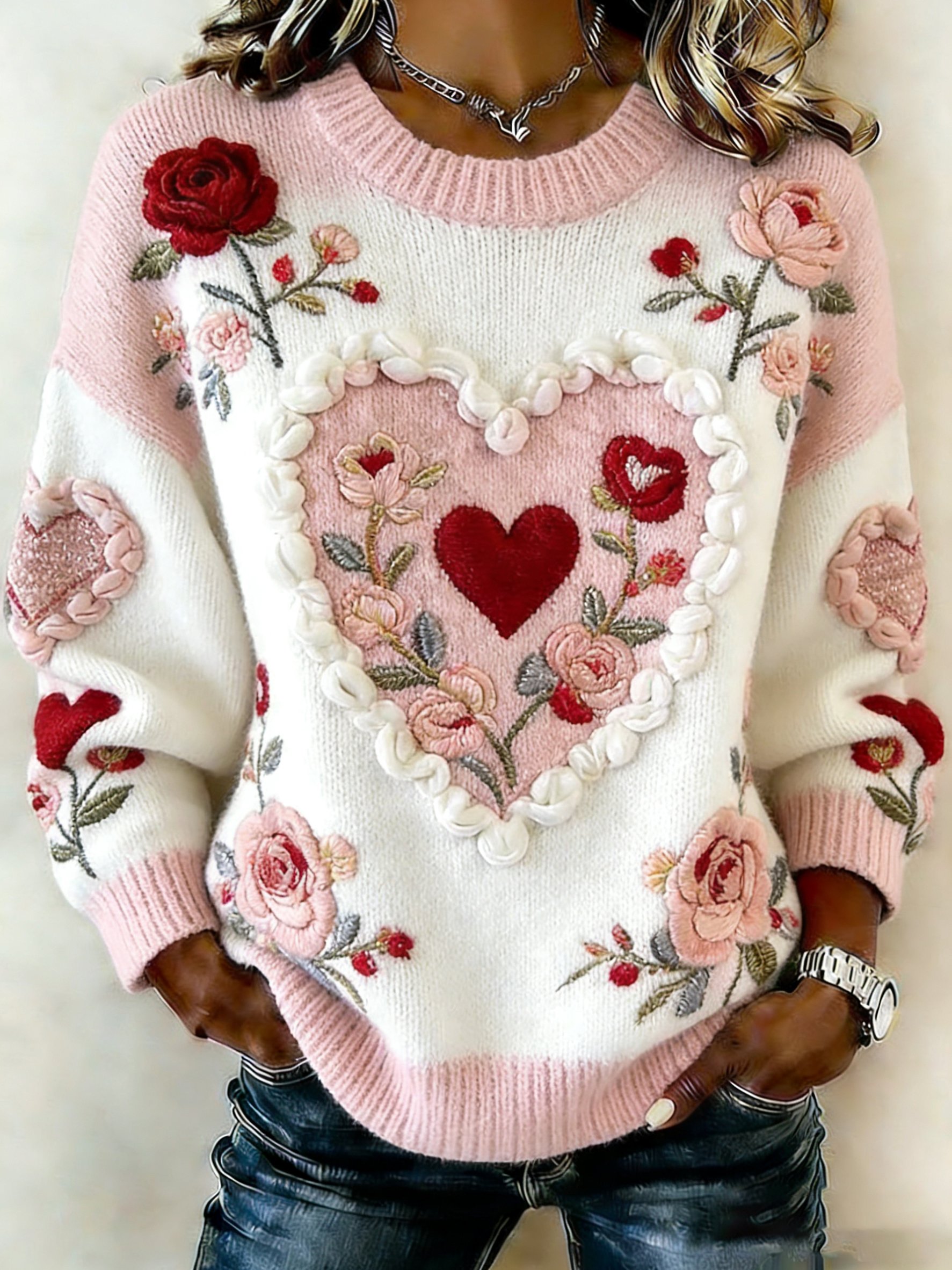 Women'S Casual Valentine'S Day Heart Print Sweatshirt