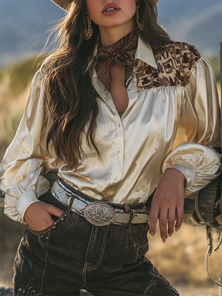 Women's Luxe Satin Casual Western Long Sleeve Shirt