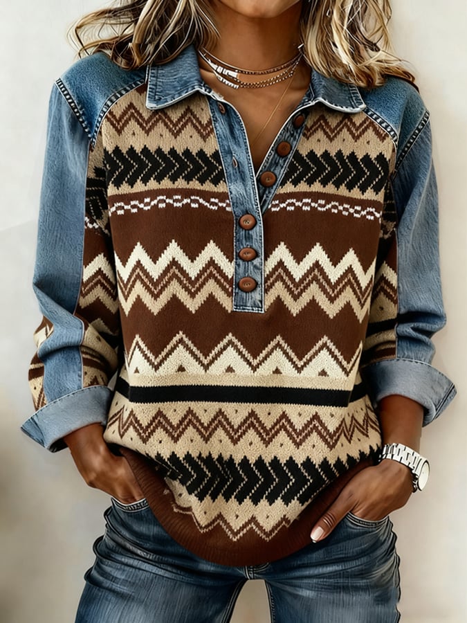 Women's Retro Western Print Casual Sweatshirt