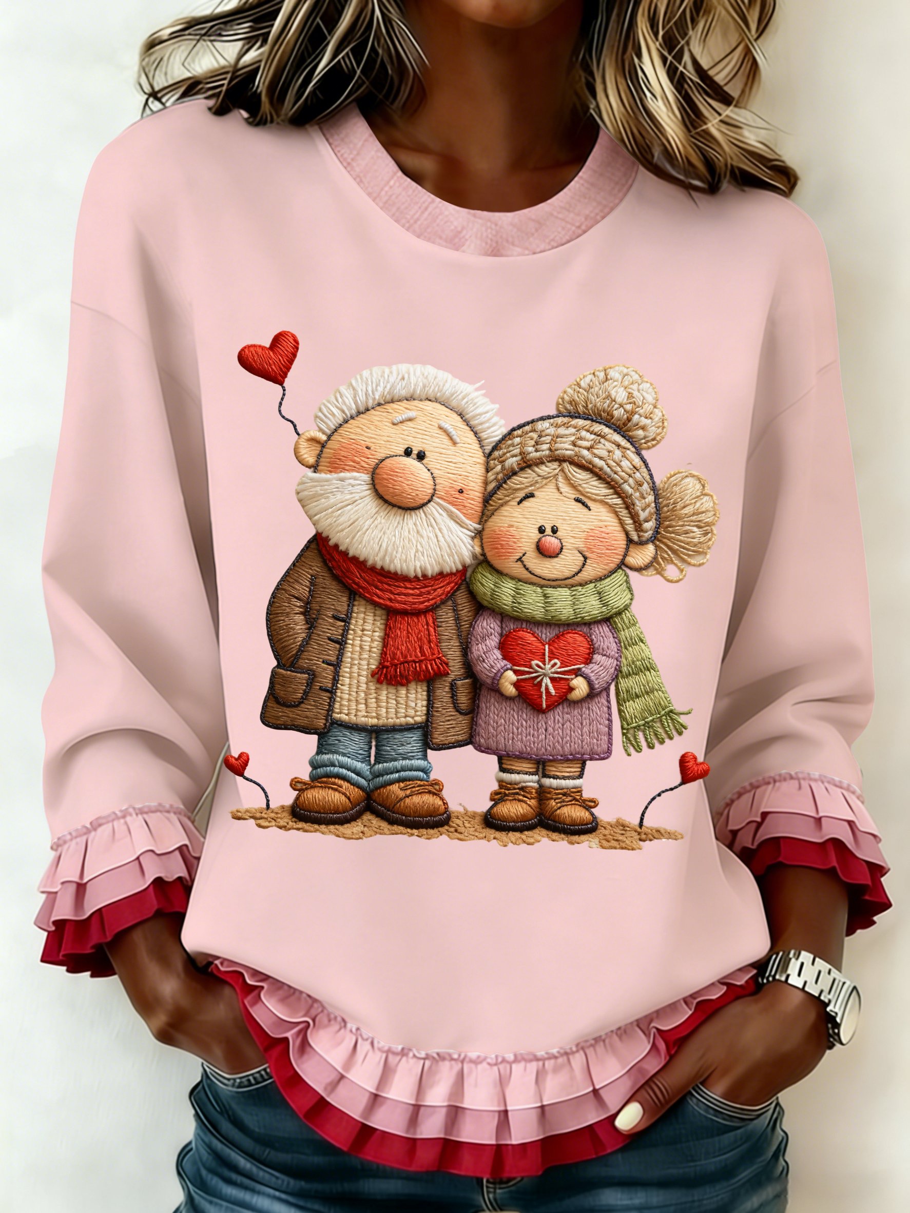 Women's romantic crew neck top for Valentine's Day