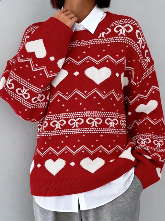 Women's Valentine's Day Heart Pattern Pullover Sweater