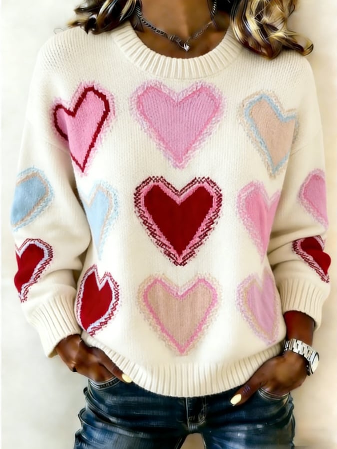 Women's Valentine's Day heart-print long-sleeved knitted top